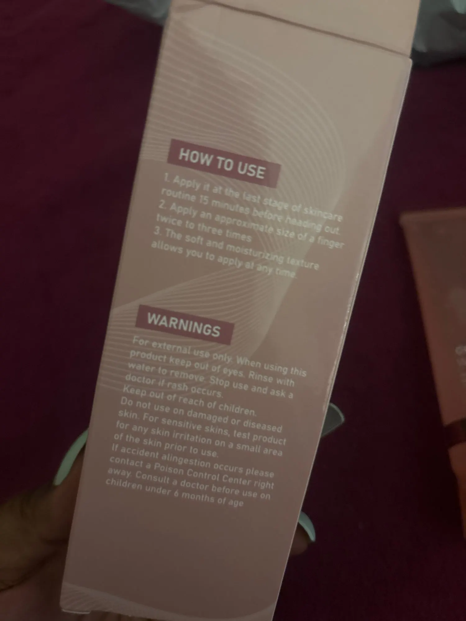 I placed it on my face and the next day I felt like they were hair removal with a wax on my face. I don’t recommend it, when it drys it is very dry, it should be removed with water and my skin got wet.