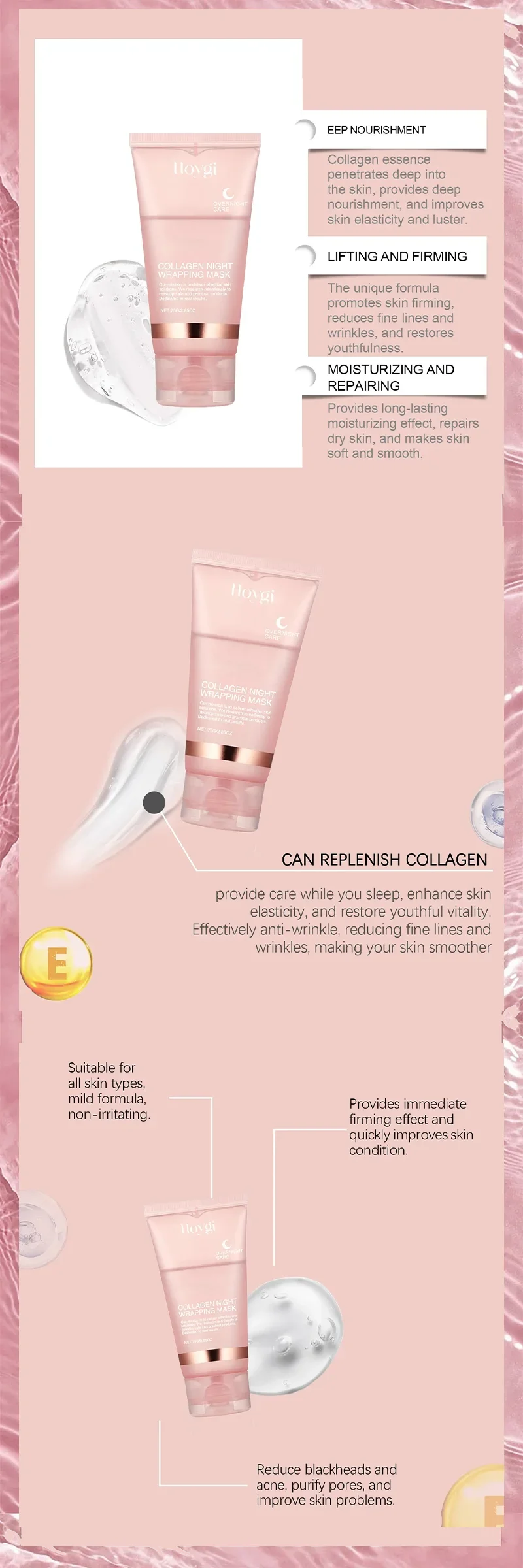 1.【COLLAGEN FACE MASK】providing 30 minutes of intensive care. which can hydrate and tighten skin, giving you a youthful glow